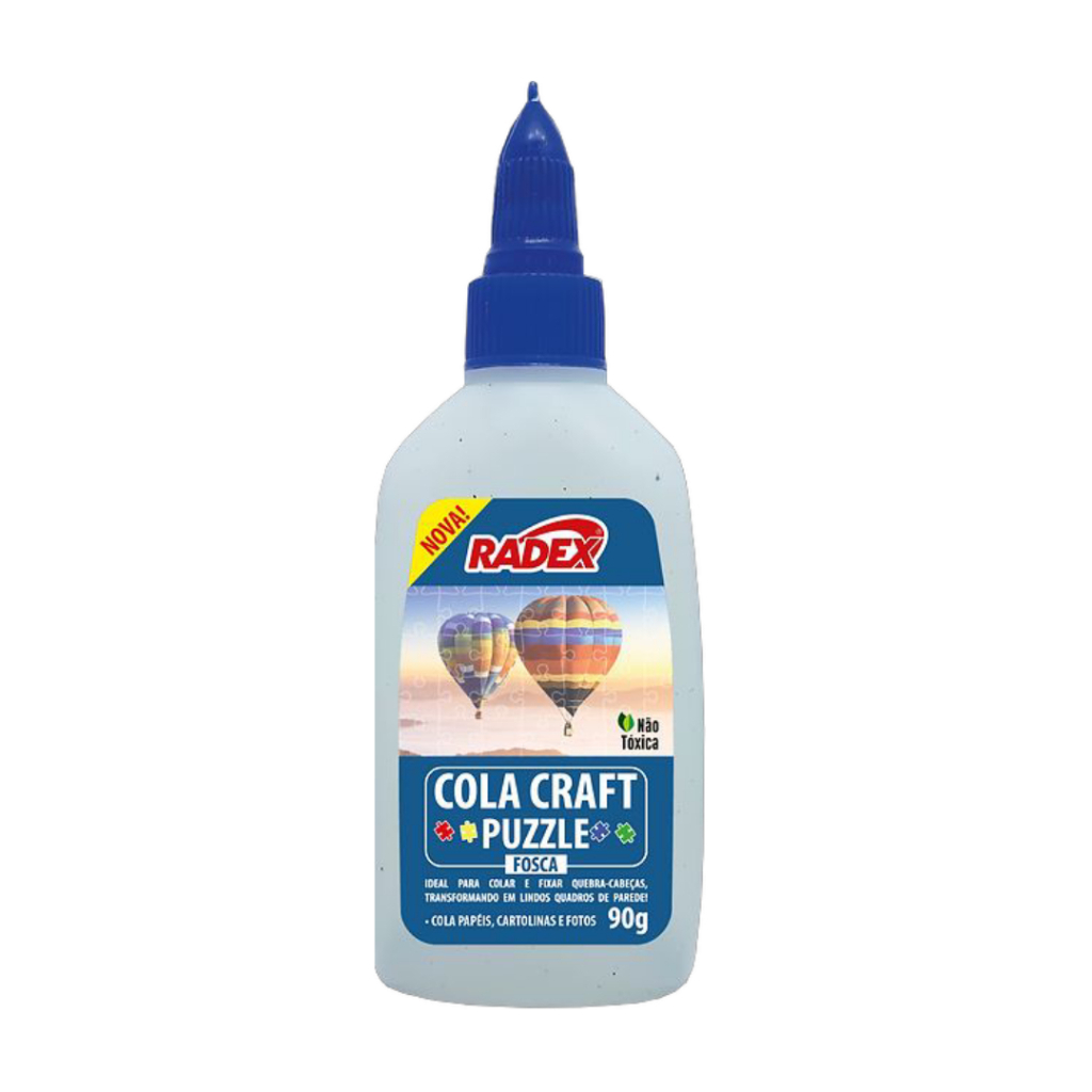A Cola Craft Puzzle Radex é um adesivo especialmente desenvolvido para colar e fixar quebra-cabeças montados, transformando-os em quadros para decoração.