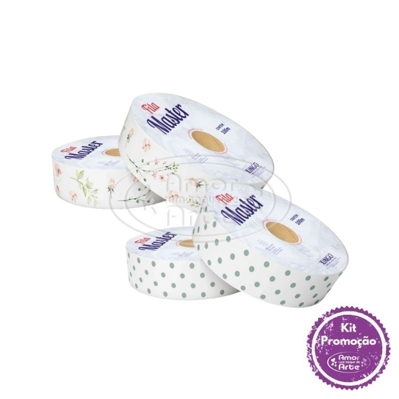 Kit 2 Fitas Master Decoradas (Alice + Poá Verde) 32mm x 100m, Xingó. Ideal para laços, decoração e embalagens. Medidas: Cada rolo contém 100 metros de fita com largura de 32mm. Composição: Polipropileno e Polietileno (Plástico). Obs.: Imagens Ilustrativas, as cores podem sofrer pequenas variações conforme a sua tela/monitor. Medidas Aproximadas.