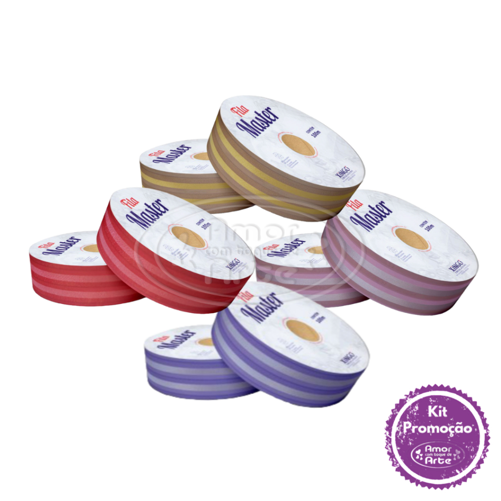 Kit 4 Fitas Master Listras (Vermelho + Nude + Lilás + Rosa) 32mm x 100m, Xingó.