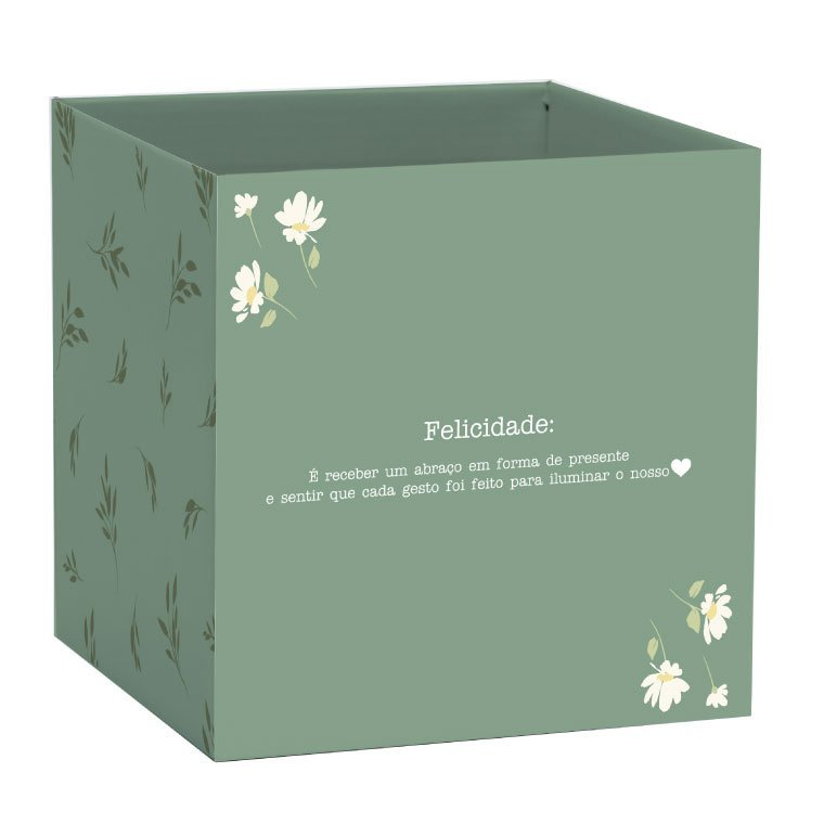 Kit 5 Cachepot Papel Quadrado Diversas Cores e Estampas, Pote 15 – Xingó. Embalagem decorativa em papel ideal para decoração de vasos e arranjos de flores e presentes. Composição: Papel Cartão, Papelão Micro Ondulado e Pigmentos. Tamanho: (15,0/15,0) x 15,0cm. Fácil montagem, fechamento com encaixe, não necessita de cola. Ideais para Orquídeas, Begonias, Azaléias, Artúrios, Lírios, Kalanchoes, Flores de Maio, Crisântemos e Rosas do Deserto e Pequenos Kits de Presentes. *Na variação SORTIDOS, as cores e estampas são conforme a disponibilidade do estoque. Obs.: Imagens Ilustrativas, as cores podem sofrer pequenas variações conforme a sua tela/monitor. Medidas Aproximadas.
