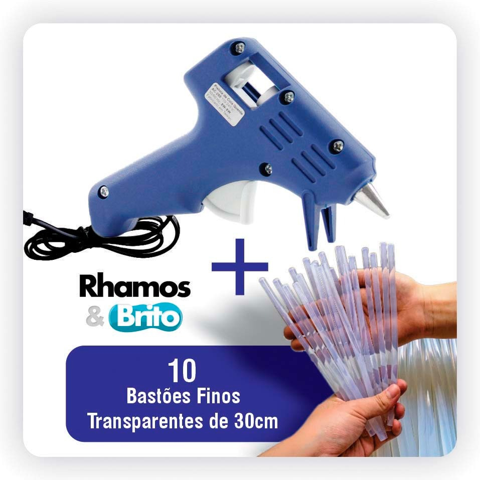 Kit Pistola Cola Quente Fina Artesanal AC-280, Rhamos & Brito + 10 Bastões Cola Quente Refil Fino Transparente 7,5mm.