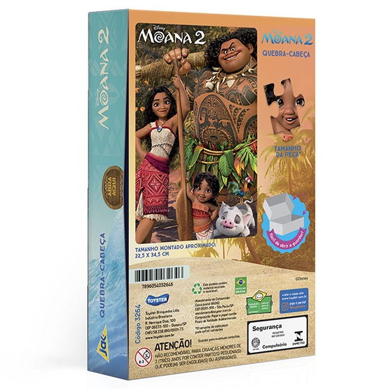 O quebra-cabeça da Toyster é certificado por órgãos de segurança, garantindo que o produto é seguro para a idade recomendada. É uma opção popular e acessível para presentear crianças que gostam da Moana e de jogos de encaixar.