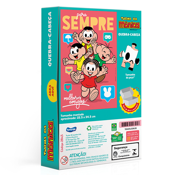 O quebra-cabeça da Toyster é certificado por órgãos de segurança, garantindo que o produto é seguro para a idade recomendada. É uma opção popular e acessível para presentear crianças que gostam da Turma da Mônica e de jogos de encaixar.